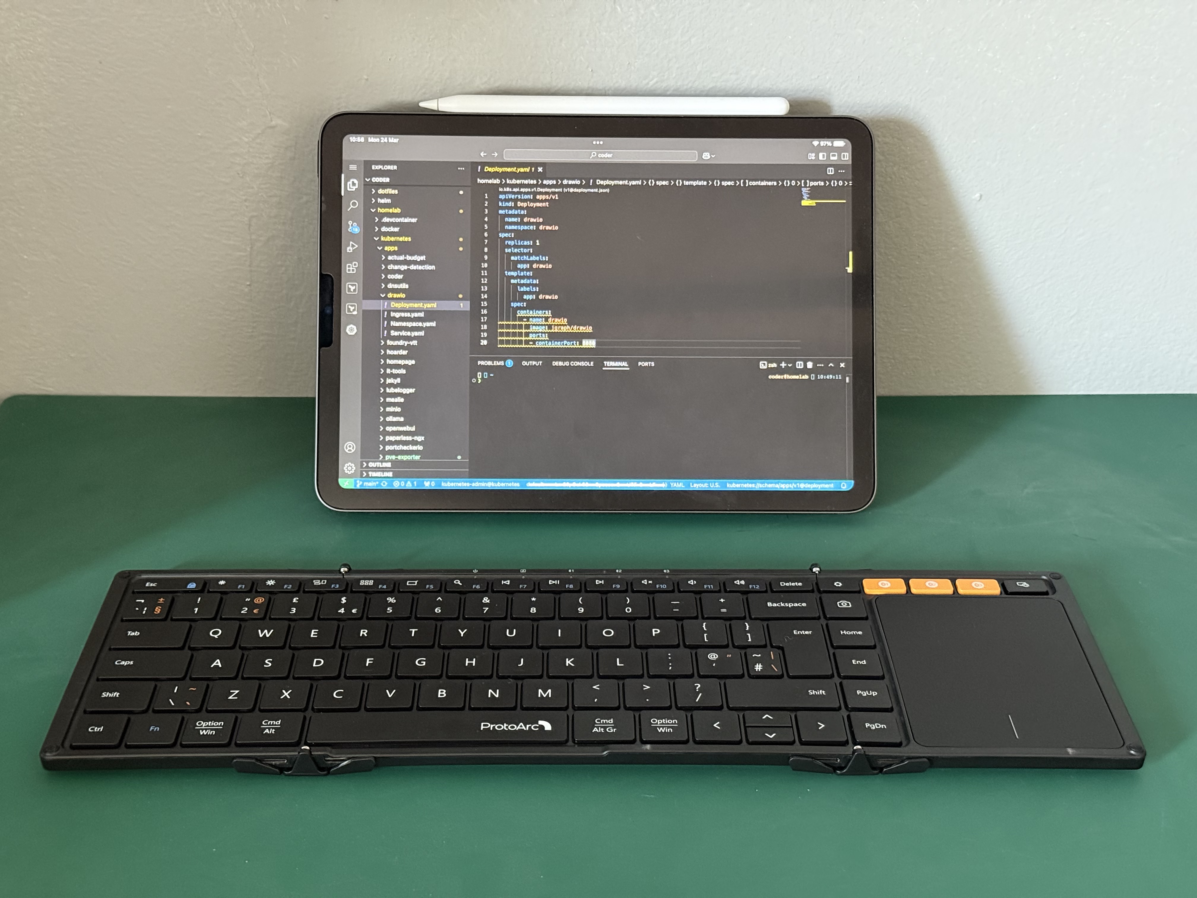In fact, I did this recently when I was in Dublin for work - I was using an iPad and a travel keyboard. Connecting home via Wireguard and then running VSCode in the browser through Coder.